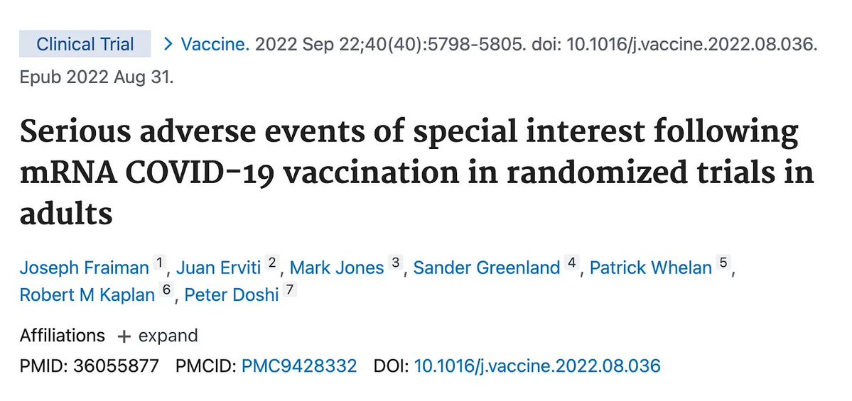 Dr. Hatfill’s statements are backed up by damning study after study. In 2022, the same year Dr. Hatfill said the data began piling up, Joseph Fraiman and colleagues published a reanalysis of the Pfizer and Moderna trials, showing that the number of serious post-vaccine adverse events far EXCEEDED the number of hospitalizations prevented. Pfizer trial: • Adverse Events of Special Interest: 10.1 extra cases per 10,000 vaccinated compared to placebo. • Hospitalizations prevented: 2.3 per 10,000. Moderna trial: • Adverse Events of Special Interest: 15.1 extra cases per 10,000 vaccinated over placebo. • Hospitalizations prevented: 6.4 per 10,000 https://pubmed.ncbi.nlm.nih.gov/36055877/reanalysis