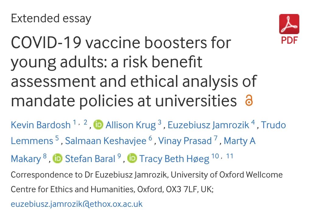 In fact, Fraiman and colleagues published another study showing that in order to prevent one COVID‑19 hospitalization over a 6‑month period among young adults (18-29), over 30,000 of them would need to receive a third (booster) mRNA dose. For each hospitalization prevented, the analysis estimated that at least 18.5 serious adverse events would occur. https://jme.bmj.com/content/50/2/126