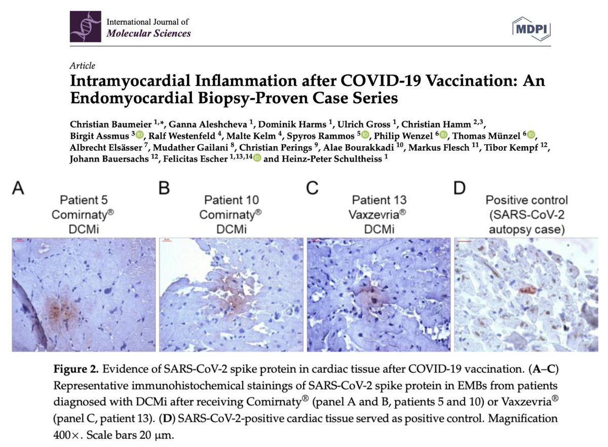 Prof. Sucharit Bhakdi has published autopsy reports that provide irrefutable proof of organ damage caused by mRNA vaccines rather than COVID-19 infection. Bhakdi utilizes immune staining methods that light up specific antigens to determine if “only spike protein but no nucleocapsid protein” can be detected during an autopsy, meaning the inflammatory changes in the blood vessels of the brain and heart must be attributed to mRNA vaccination rather than viral infection. https://doctors4covidethics.org/vascular-and-organ-damage-induced-by-mrna-vaccines-irrefutable-proof-of-causality/
