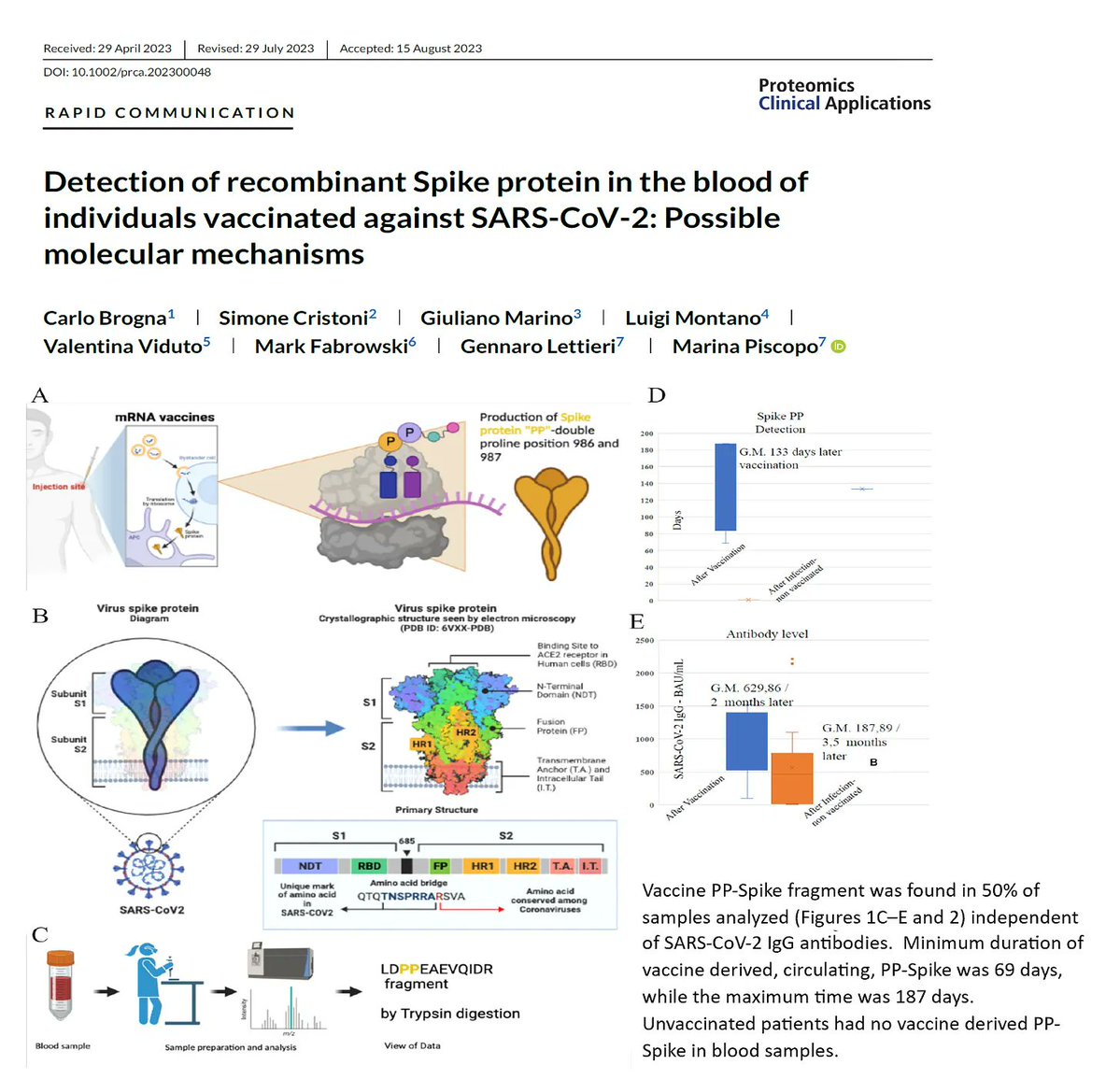 (37/57) “These data demonstrate the presence of billions to hundreds of billions of DNA molecules per dose in these vaccines. Using fluorometry, all vaccines exceed the guidelines for residual DNA set by FDA and WHO of 10 ng/dose by 188 – 509-fold.” Title: DNA fragments detected in monovalent and bivalent 2 Pfizer/BioNTech and Moderna modRNA COVID-19 vaccines from Ontario, Canada: Exploratory dose response relationship with serious adverse events Authors: David J. Speicher, et al. Journal: PREPRINT Key Excerpts: “These data demonstrate the presence of billions to hundreds of billions of DNA molecules per dose in these vaccines. Using fluorometry, all vaccines exceed the guidelines for residual DNA set by FDA and WHO of 10 ng/dose by 188 – 509-fold…Our findings extend existing concerns about vaccine safety and call into question the relevance of guidelines conceived before the introduction of efficient transfection using LNPs.” Link: https://osf.io/preprints/osf/mjc97
