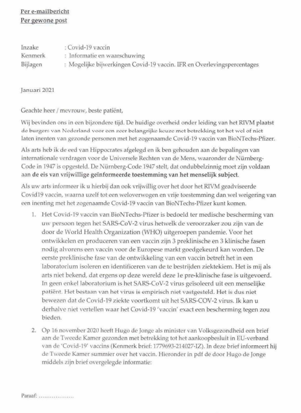Brief die een huisarts uit Lelystad aan zijn patiënten stuurde. Informed Consent: 1/2 In tweet 2/2: de reactie van Hugo https://t.co/B3Sxp6umeK