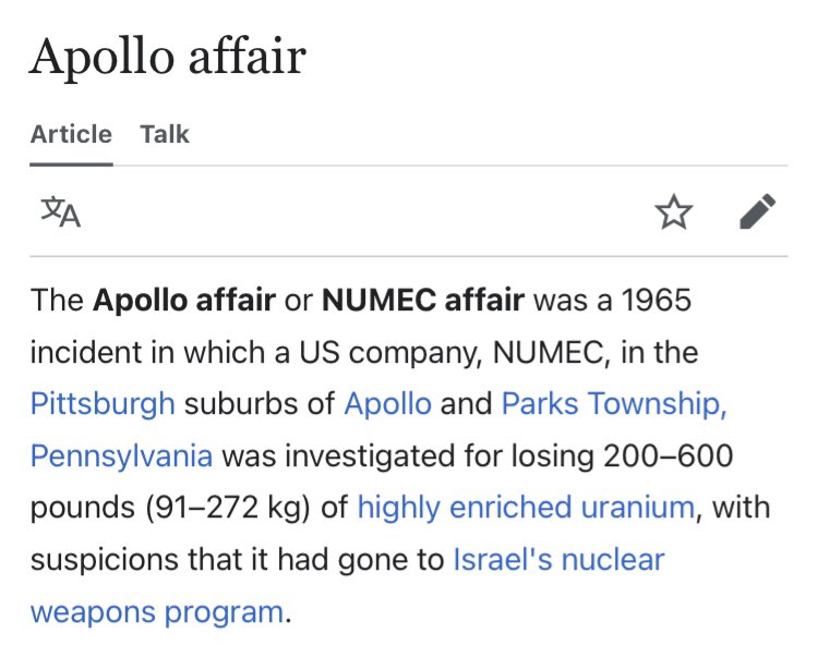 But that’s not all. The family that funded Clay Shaw’s defense was a wealthy ✡️ Jewish Family known as the Stern Family. The stern family had ties to Tibor Rosenbaum, but more specifically they were investors in the Apollo Nuclear plant. ☢️ This specific plant was investigated for losing highly enriched uranium, for suspicion that it had gone to Israel. 🧵10/25