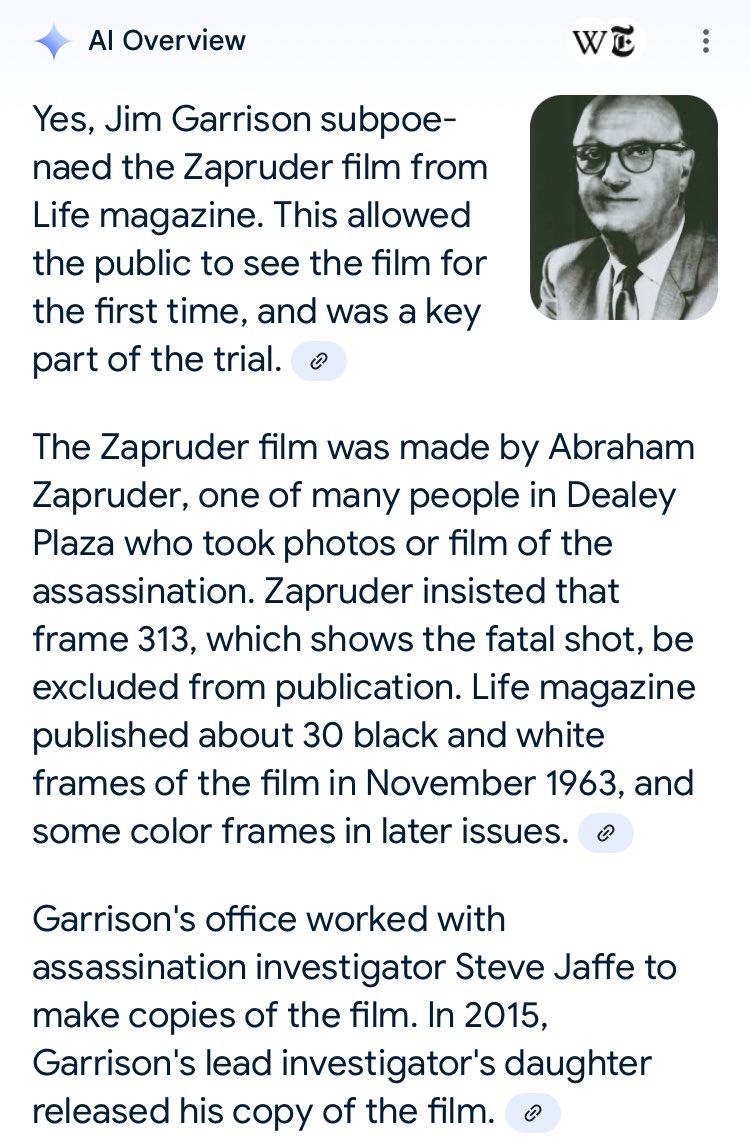 To be fair to Garrisons case, I do think it was possible those men were involved in some way, however they were not the power brokers. They certainly weren’t working with Pro Cuban, and Pro Communist Oswald. We know they weren’t the power brokers, because they kept winding up dead…☠️ All except Clay Shaw, whose case might have actually helped the Israeli/Jewish Mobsters with his acquittal, and of course remember that the ✡️ Stern family funded his defense. Regardless of the failure of the court case, there is one unbelievable thing Garrison did for the public. He subpoenaed Time/Life magazine for the Zapruder film,🎥 making it available for the public for the first time. 🧵 13/25