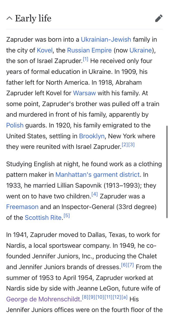 The Official story on Abraham Zapruder is he just happened to be in the right place at the right time with some of the best Camera equipment to video tape the most important historical video of all time, and even though gun shots are ringing out, he’s not phased…. Not so fast. The parts they leave out is that Abraham Zapruder was a Ukrainian ✡️Jewish Freemason. He also had an office in the nearby Dal-Tex building where witnesses suggested some actual shots came from. This makes sense. Remember Oswald is the patsy, but further the Texas Book Depository building where they staged Oswald’s gun was also a distraction. Oswald worked in the building so it was perfect. The Dal-Tex Building also had connections to ✡️Marty Friedman, another Jewish garment manufacturer like Zapruder, and co owner of the building, ✡️ was Jewish man David Weissblatt, a big supporter of the ADL. Do you think that’s a coincidence? 🧵 14/25