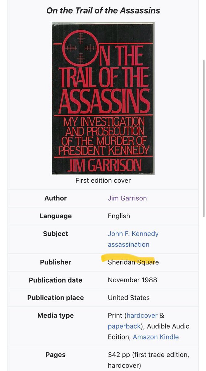 This is not the only example of controlled opposition, and intentional disinformation regarding the Kennedy shooting. Let’s go through some more. The most obvious one, is the Oliver Stone movie JFK. Oliver stone is Jewish. ✡️ His father’s original last name was Silverstein. Further the screenplay writer on the film was a Jewish ✡️ man named Zachary Skylar. The book written by Jim Garrison was published by a Jewish ✡️ publisher Sheridan Square, that had ties to Jewish ✡️ communist Irving Kristol. Irving Kristol is Bill Kristol father. Bill Kristol is one of the founders of the Jewish ✡️ neocon movement that led to the Iraq war. While i do think Jim Garrison was trying to do the right thing, I believe he couldn’t see past the gatekeeping and truly believed it was the CIA. 🧵 17/25