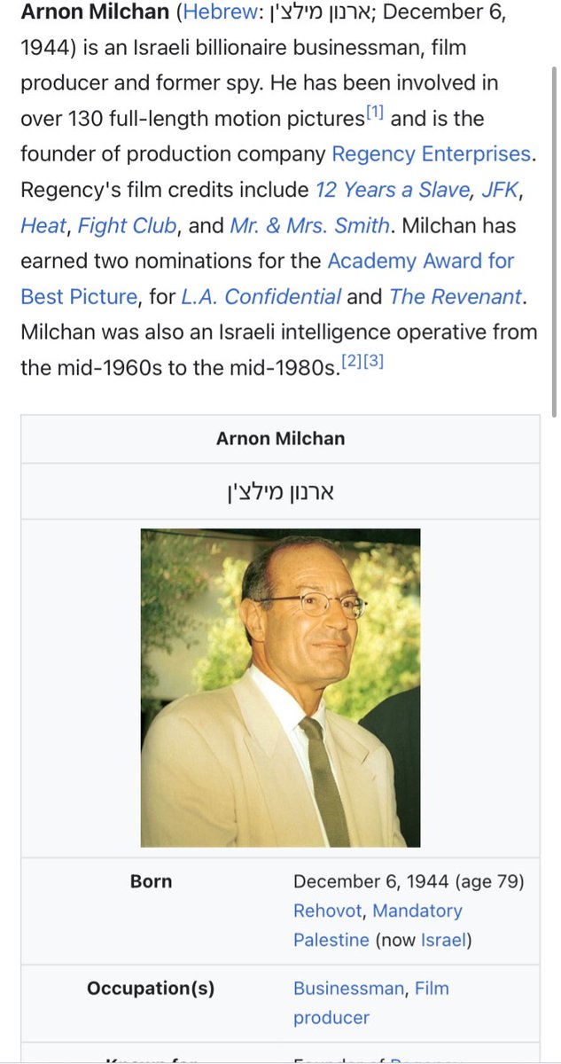 11/ Let's stay on "JFK," and shift our focus to its producer, Arnon Milchan--who, it turns out--was an israeli spy & nuclear weapons trafficker since the 1960s, critical to helping israel build its nuclear program. https://t.co/uwsBpJQGTm