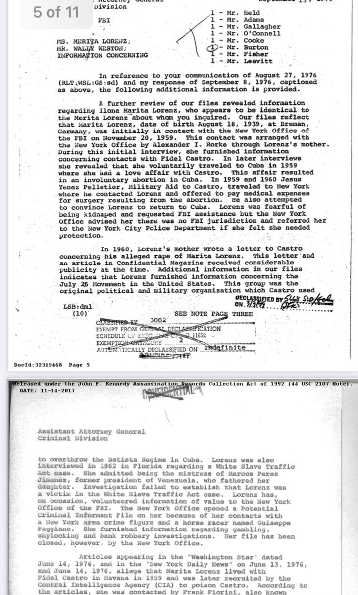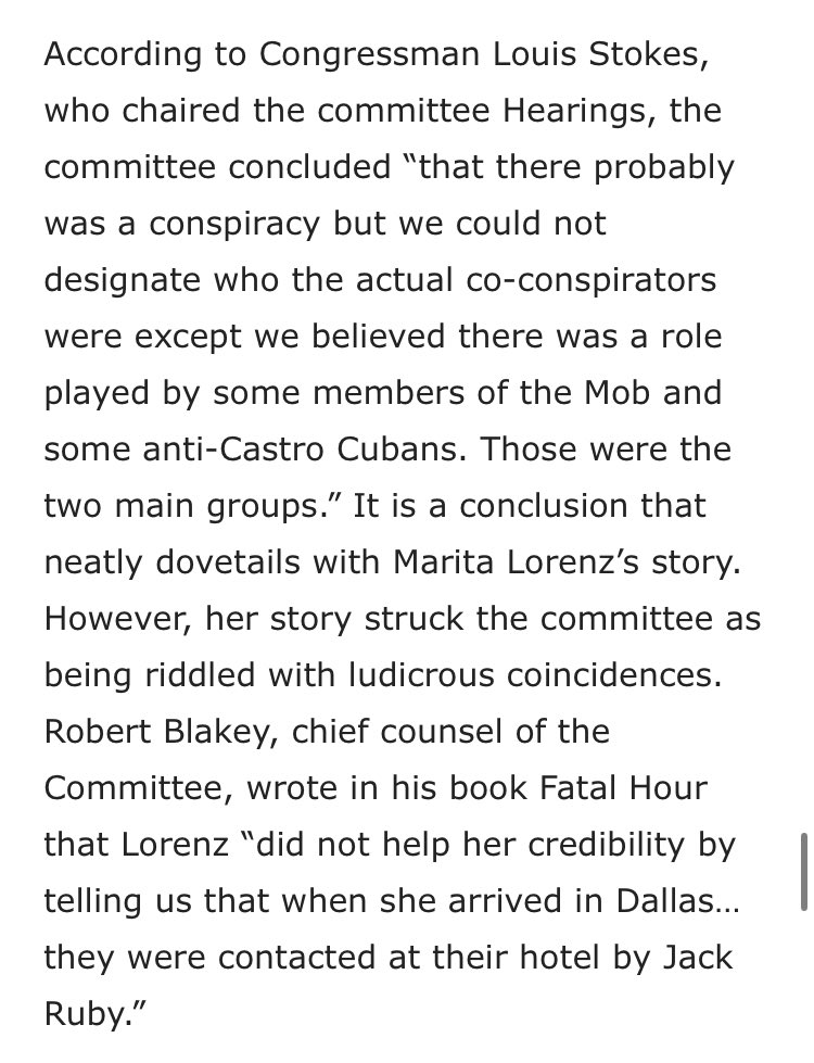 As far as disinformation agents go, our next contestant is a doozy. Marita Lorenz comes out of nowhere in 1970’s and claims she was working for with Frank Sturgis, Howard Hunt, and the CIA to infiltrate and take out Castro. She also drags in Oswald and said she met him in 63, and even claims she met Jack Ruby at one point. She testified in front of the house select committee of assassinations, but her Testimony was deemed as unreliable. Personally, I believe she was employed to throw some more gas on the CIA and Oswald being involved in Kennedys death, and distract you from the truth. Supposedly she is a Holocaust survivor and from Germany. One can only assume she is Jewish ✡️. Further, as far as I can tell, no one corroborates her story except for Frank Sturgis, someone with known connections to the Mossad. If she really worked for the CIA, does it make sense, she would come out and say the CIA are doing all these things? 🧐 same with Frank Sturgis…. 🧵 19/25