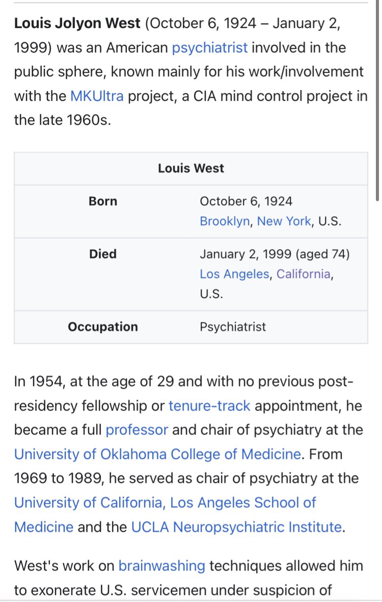 Kanye’s obvious MK Ultra handler, Haley Pasternak talking about his history with special forces and using drugs on soldiers: “Lucky enough to have him as my graduate advisor. And the area of that I was interested in was how drugs and food affect muscular performance And Or when you say drugs would that like performance enhancing drugs are they All kinds of drugs Right Okay So working for the military, I wasn't governed by the same laws that the typical person was So I could look at the impact of certain drugs that are not that are not everyday things. So we looked at a drug called Madaffinil, which was for narcoleptics. So if you give a soldier this…drug how long could they stay awake for without having any health detriment…Is that used now as one of these brain drugs I've I've heard the name before somewhere. Yeah So it's…It's a very interesting modafinil…It will…keep you awake but it's not a stimulant. Right So if a special forces person has to stay awake for three nights waiting for the right opportunity to do whatever they have to do we could give them adaffanil and we'd keep them alert. I did a research on a drug called acetazolamide…”