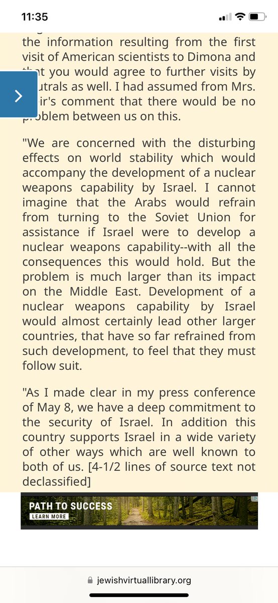 If that sounds crazy to you, dig a little deeper. As soon as Lyndon Johnson came to power, he looked the other way on Israel’s nuclear ambitions. Further he looked the other way when Israel attacked the USS liberty. 🚢 Yes Israel actually attacked one of our aircraft carriers as a way to draw us into war with Egypt. Johnson covered it up. Israel claimed it was a case of mistaken identity. 🧵 5/25