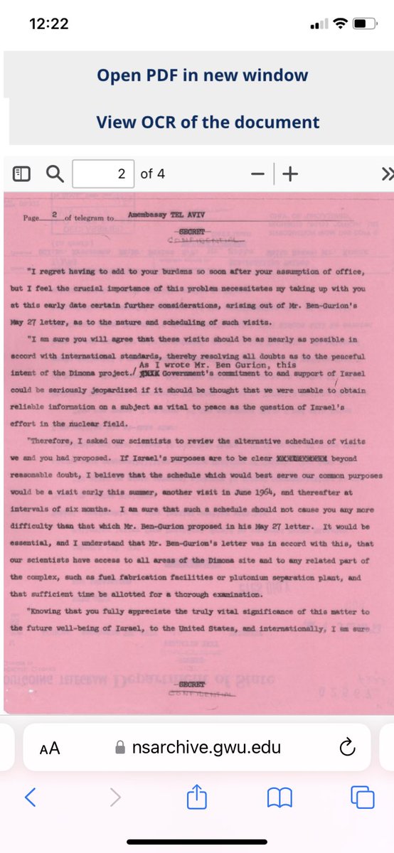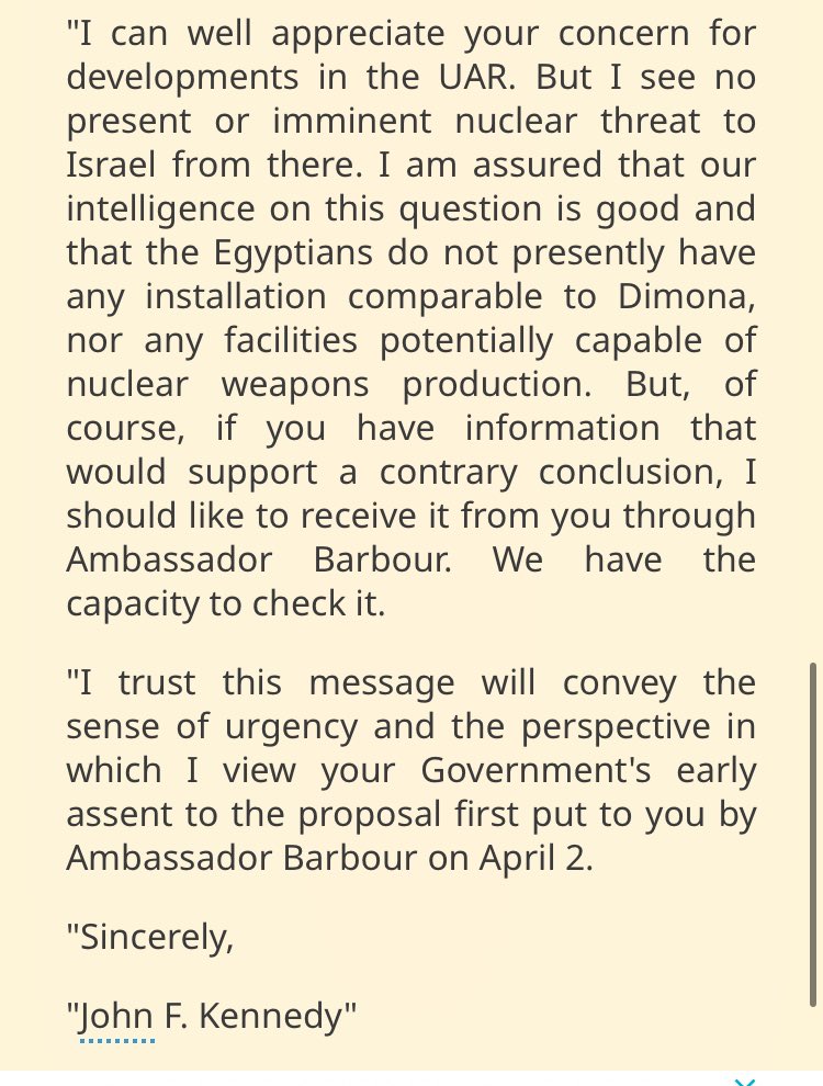 You may be thinking, why is it important to point out that Jack Ruby was Jewish? What’s his ethnicity have to do with the JFK hit job. The answer is that it is actually critically important. When discussing the Kennedy assassination you undoubtedly will hear 3 standard theories. 1. It was Oswald and the Warren report was right. 2. It was the CIA so the US could get into more wars. 3. It’s the Freemasons/Illumanati and or mafia. All of these have different aspects that can lead people into believing them, but in the end they are not complete. We are going to view the JFK assassination from an Israeli Mossad angle. Once you survey all the evidence, you will see this makes the most sense. But why would Israel or Jewish Americans want Kennedy dead? ☠️ It’s simple really. Israel wanted nuclear weapons, and Kennedy wasn’t having it. I’ve attached letters between Kennedy and the Prime ministers of Israel to show the back and forth. 🧵 4/25