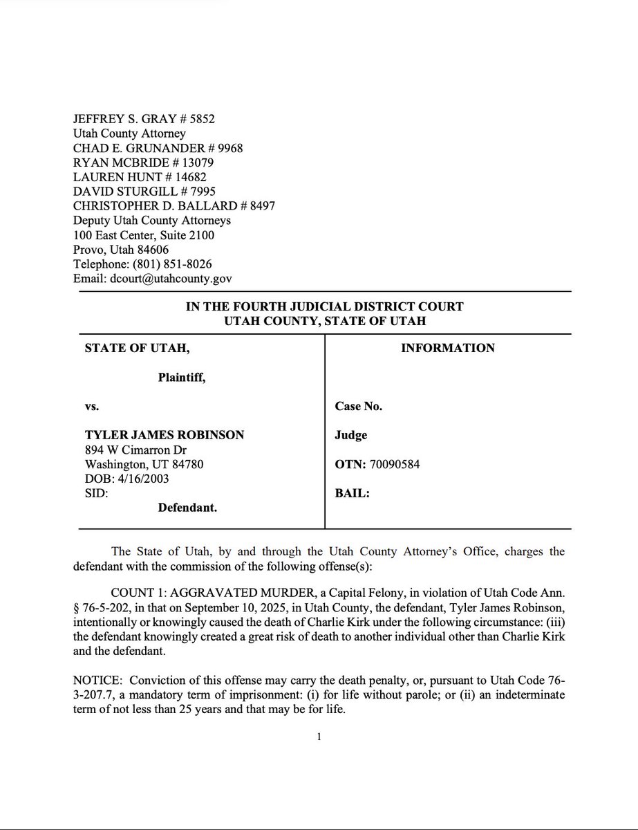First, it's important to establish that these are the official charging documents filed in the arrest of Tyler Robinson, not some "viral PDF." You can view them here: https://atty.utahcounty.gov/cms/uploads/TJR_Information_49872215e3.pdf https://t.co/qDAfGHPRSV