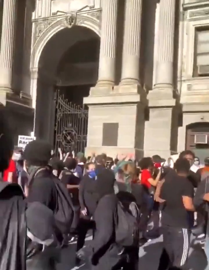 WHO IS THIS MAN DESTROYING PROPERTY?!?!?!? AND WHY HAS HE NOT BEEN CHARGED?!?!?!? IS HE A FEDERAL AGENT?!?!? WHY WAS HE ENCOURAGING PEOPLE TO GO INTO THE BUILDING?!?!? WHERE IS THE FBI?!?!?!?! CAN THE CORRUPTION GET ANY MORE OBVIOUS?!?!