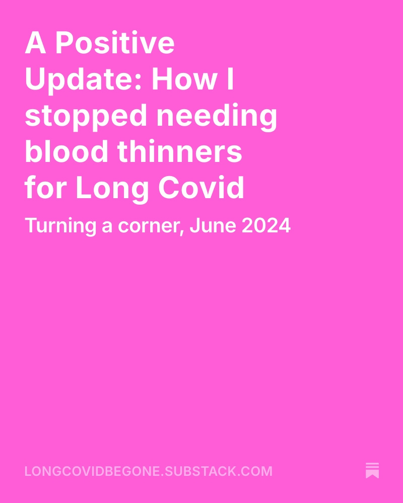 I also used things like: coconut oil - powerful antiviral Brazil nuts for selenium - glutathione precursor miso + yogurt for probiotics - immunomodulatory properties Some of this I'd started earlier - more info in my previous update here: https://longcovidbegone.substack.com/p/a-positive-update-how-i-stopped-needing 12/