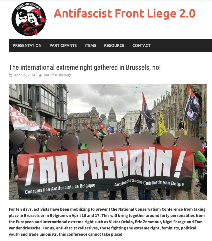 HERE ARE THE ANTIFA FASCISTS WHO ARE CREATING A POLICE STATE IN BELGIUM "For ten days, activists have been mobilizing to prevent the National Conservatism Conference from taking place in Brussels or in Belgium on April 16 and 17. This will bring together around forty personalities from the European and international extreme right such as Viktor Orbán, Eric Zemmour, Nigel Farage and Tom Vandendriessche. For us, anti-fascist collectives, those fighting the extreme right, feminists, political youth and trade unionists, this conference cannot take place!" https://liege-antifascisme-be.translate.goog/les-extremes-droites-internationales-rassemblees-a-bruxelles-cest-non/?_x_tr_sl=auto&_x_tr_tl=en&_x_tr_hl=en