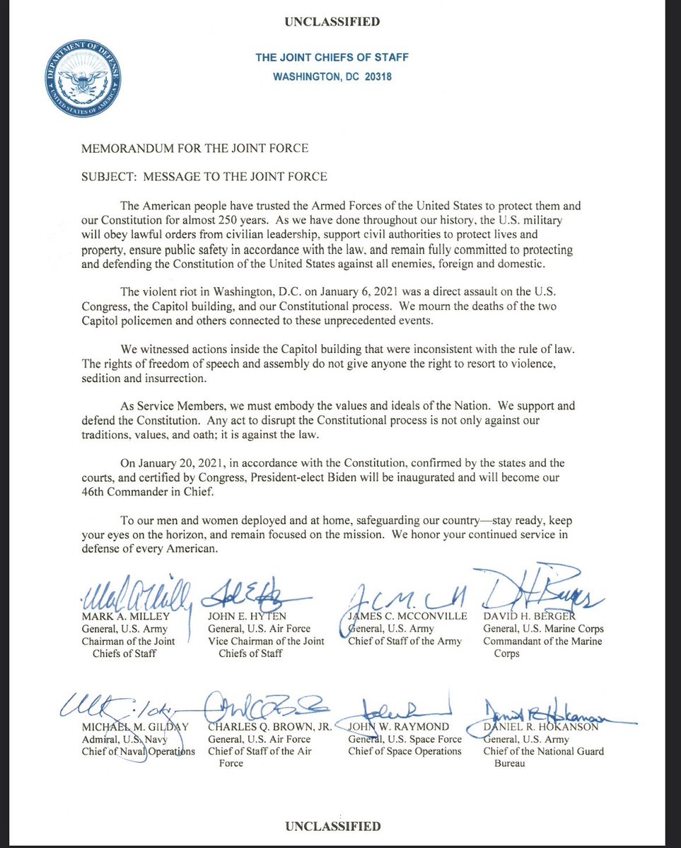 Milley’s dirty traitorous fingerprints are all over Jan 6 Look at this statement he organized and published on January 13, 2021. Completely political and subversive. https://t.co/sOKV5UOStb