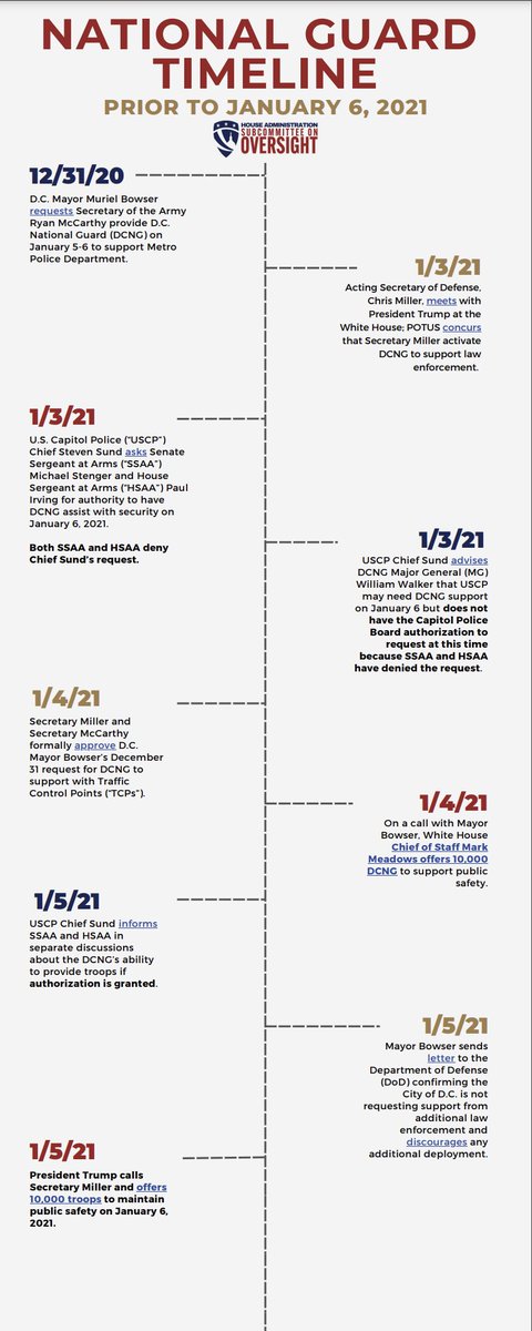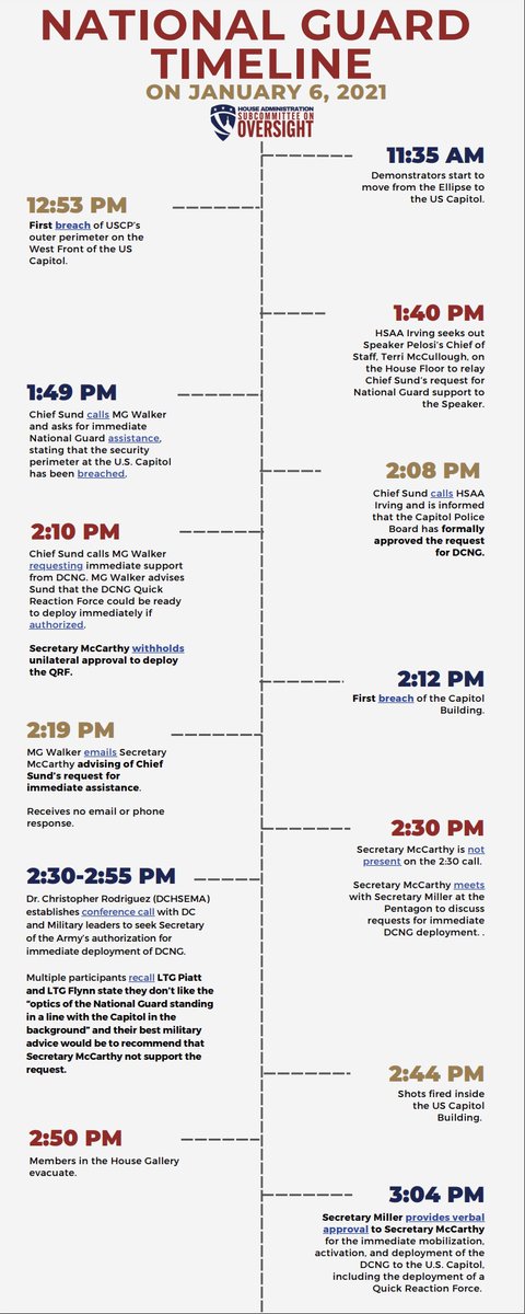 On January 6, 2021, the outer perimeter on the West Front of the U.S. Capitol is breached by rioters at 12:53pm. The DCNG arrived five hours later. Here’s the timeline: https://t.co/UhH45R51Vp
