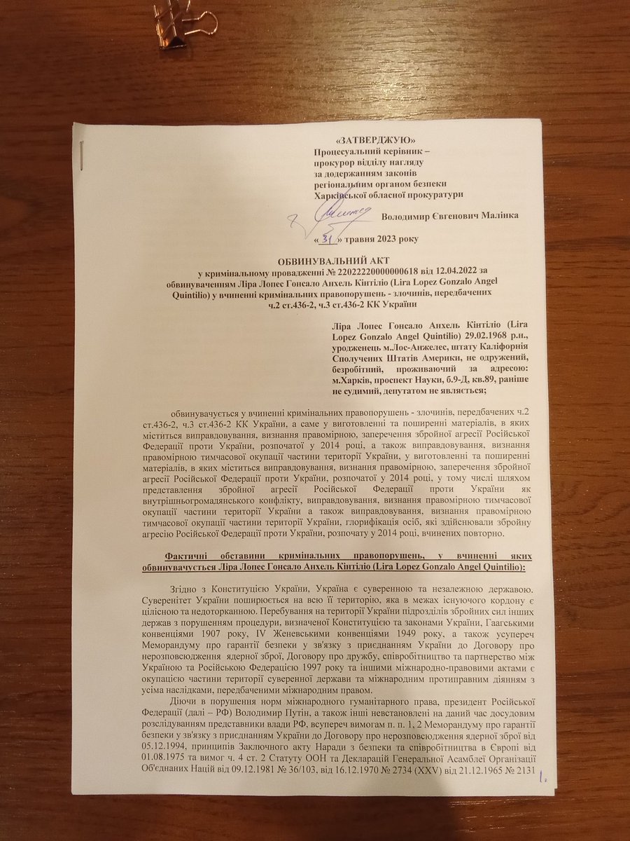 Attached to these tweets is the full indictment against me, both the original Ukrainian and English translation. As you can see, even the prosecutor admits I committed no crime against property or any person. And I certainly provided no aid or intelligence to the Russians. 3/ https://t.co/7doTcT8vEH