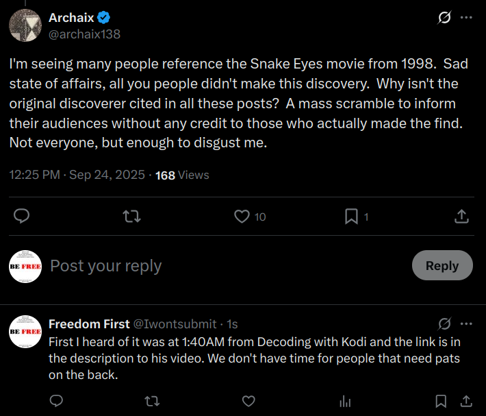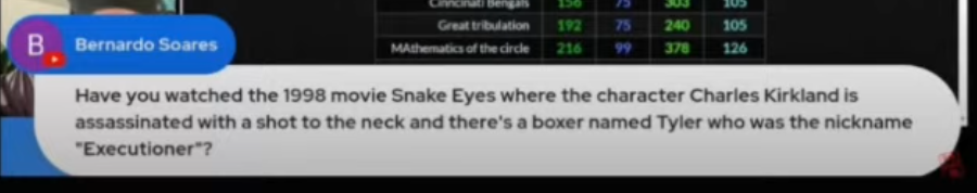 Snake Eyes - 1998 - Believe everything except your eyes" - Year of the snake, Executioner Tyler, Sept 10th, character Charles Kirkland gets assassinated from a gun shot to his neck. All broken down. Video in comments. https://t.co/kE9BbAS6US