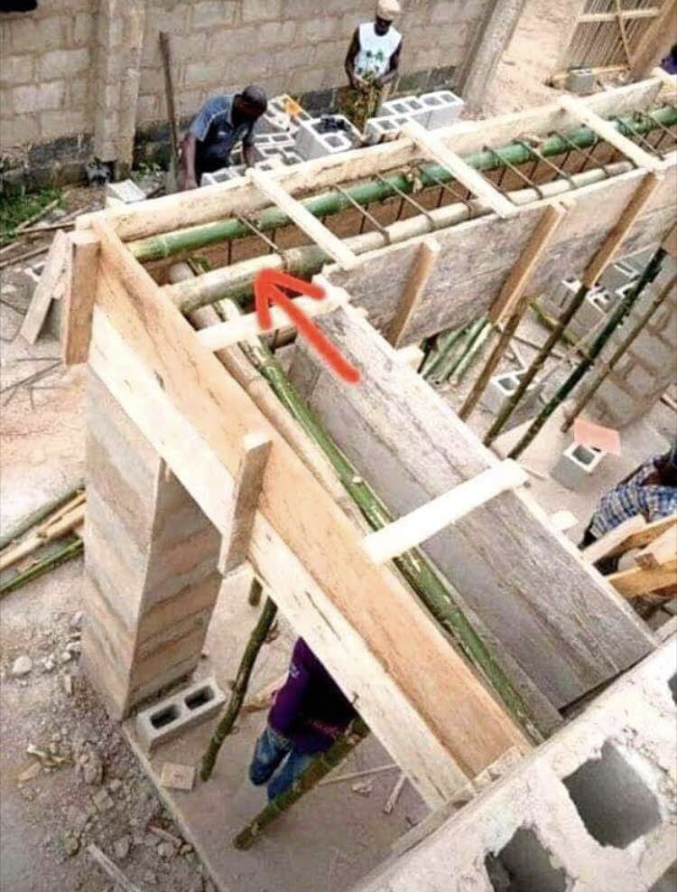 Dear Architect, Engr’s, Building Professional, Let’s Learn. BAMBOO in replacement of IRON-ROD. What’s your take on this ( find the attached image to this tweet for reference) NB : — Don’t try this if you’re not a building professional. — Image credits from Facebook.