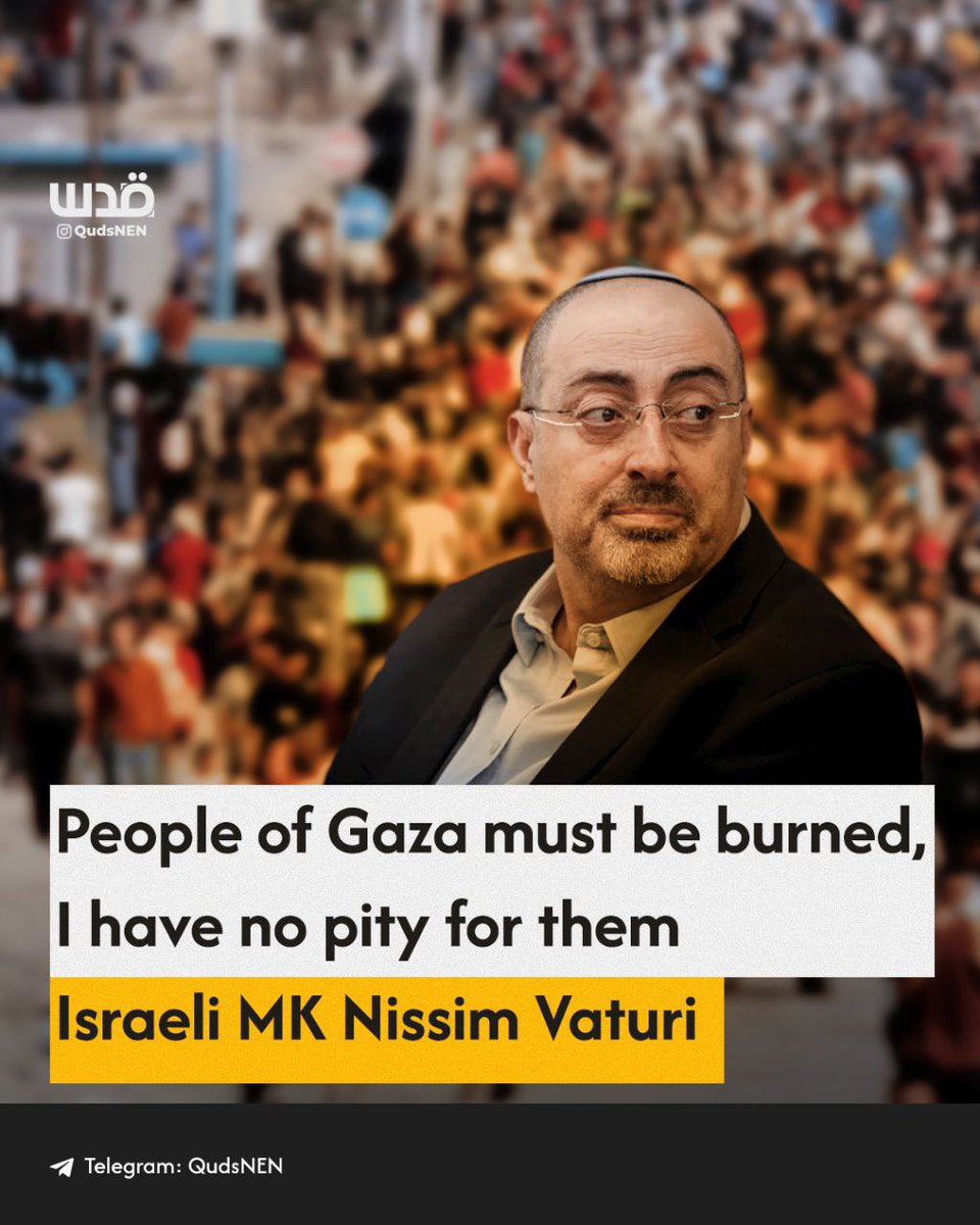 Israeli MP Nissim Vaturi in press remarks: "Gaza and its people must be burned, I have no pity for them." https://t.co/8tpS9zn4BX