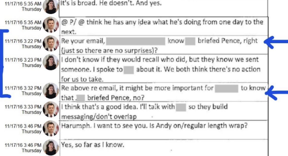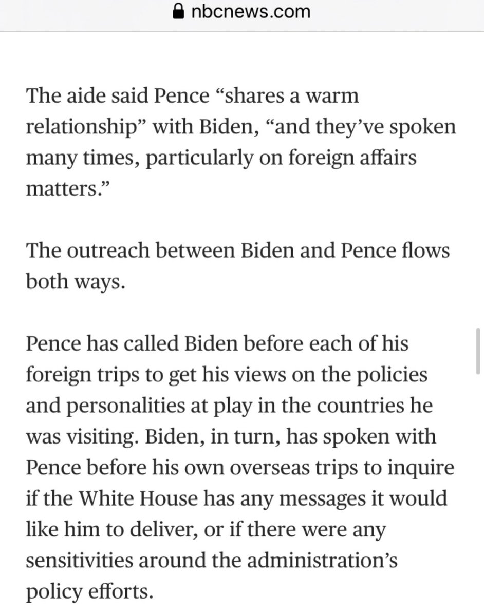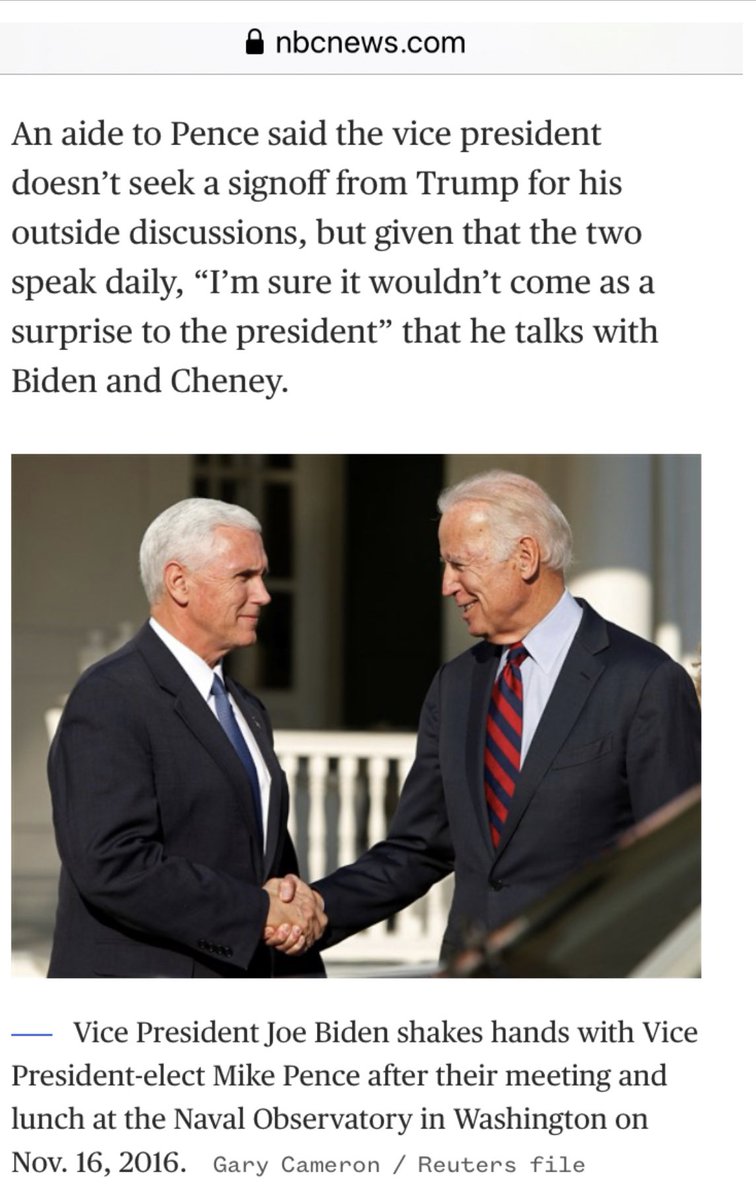 Interesting that the day after they met for lunch per the article, the Page/Strozk text messages say Pence was briefed. •Nov 8, 2016: Trump/Pence elected. •Nov 16, 2016: Pence and Biden have lunch. •Nov 17, 2016: Strzok texts that Pence was briefed. #LiddleMike 4/