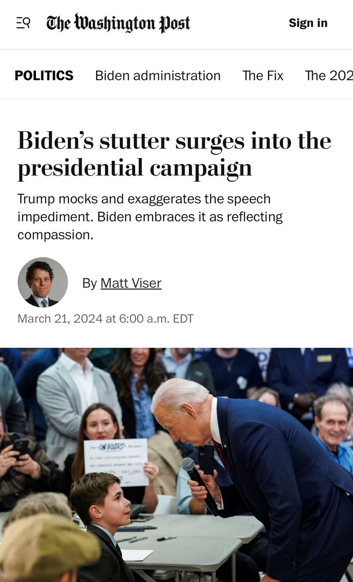 This angle was resurrected in WAPO as recently as March of this year. “Biden’s stutter surges into the presidential campaign." Framed as “Trump mocking an old man with a speech impediment." The Big Lie. https://t.co/lRgqZH3Dxg