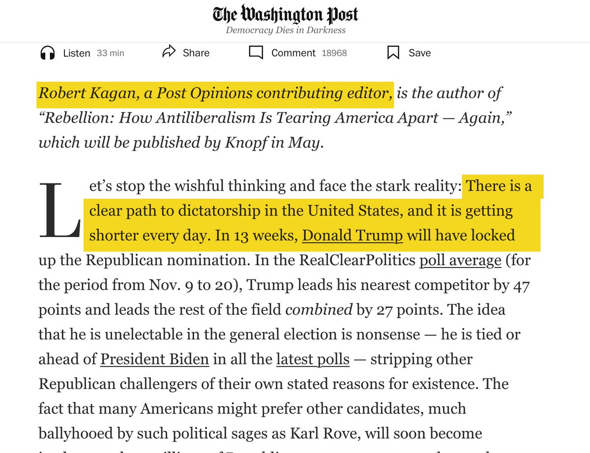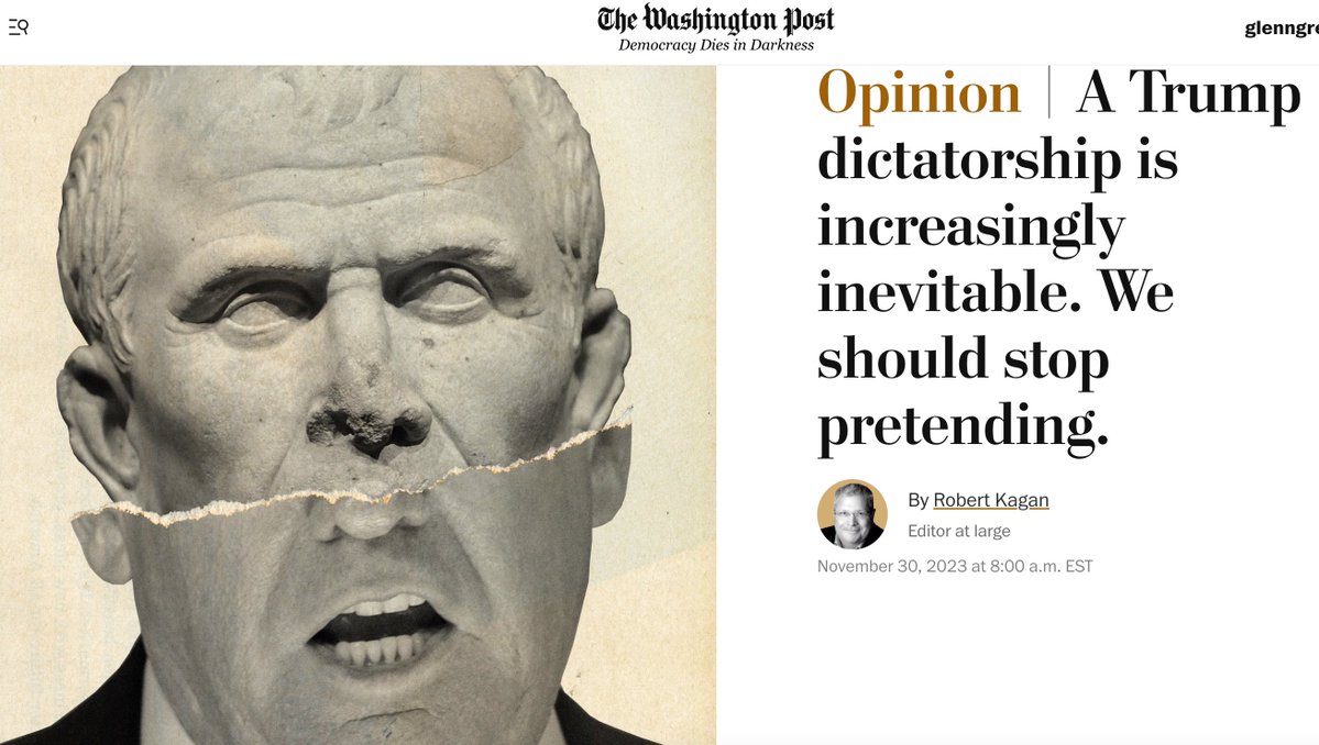 For example, as @ggreenwald points out, Victoria Nuland's husband, who weaved the Bush narratives to invade Iraq, now is a WaPo editor dedicated to the new toxic narrative of Trump the Dictator https://x.com/ggreenwald/status/1731362577660166292?s=20