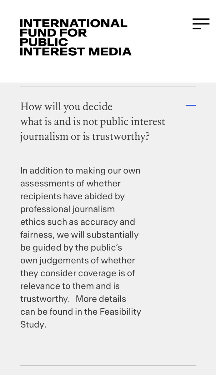 “In addition to making our own assessments of whether recipients have abided by professional journalism ethics such as accuracy and fairness, we will substantially be guided by the public's own judgements of whether they consider coverage is of relevance and is trustworthy.