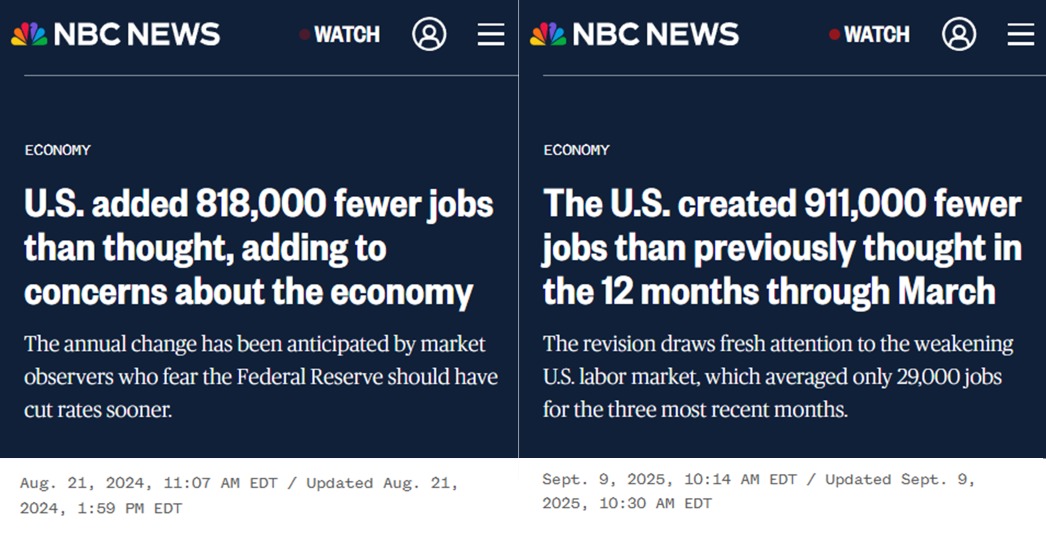 Remember last year when they revised job numbers and found that 818,000 jobs "created" under Biden didn't exist? Well, they just revised the numbers again and found that another 911,000 jobs didn't exist. Democrats lie about literally everything. https://t.co/ICKIh1iISf