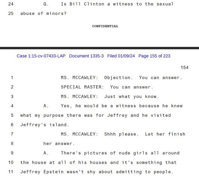 🚨Epstein Docs!🚨 Epstein victim states that she “doesn’t think Trump participated in anything” and never saw him at Epstein’s properties. She also says Bill Clinton was a witness to the sexual abuse of minors and has been to the island, and that Jeffrey “wasn’t shy” about sexual abuse of children, having nude pictures of girls all over the house. Eventually the public will arrive to the conclusion that Trump was part of the sting operation to expose this whole thing, hence why all those implicated fear and attack Trump more than anything. It’s happening.