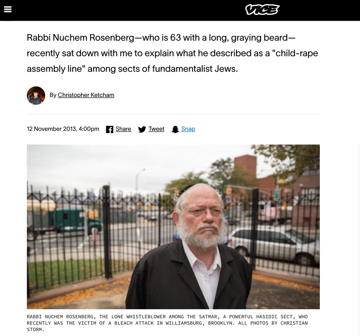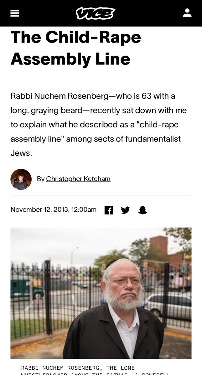 A very informative article is "The Child-Rape Assembly Line" from 2013, in which Rabbi Nuchem Rosenberg, a member of Brooklyn's Satmar Hasidim branch of Judaism, exposed many horrific aspects of Orthodox Judaism. You can read it here: https://www.vice.com/en/article/qbe8bp/the-child-rape-assembly-line-0000141-v20n11