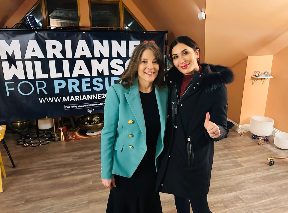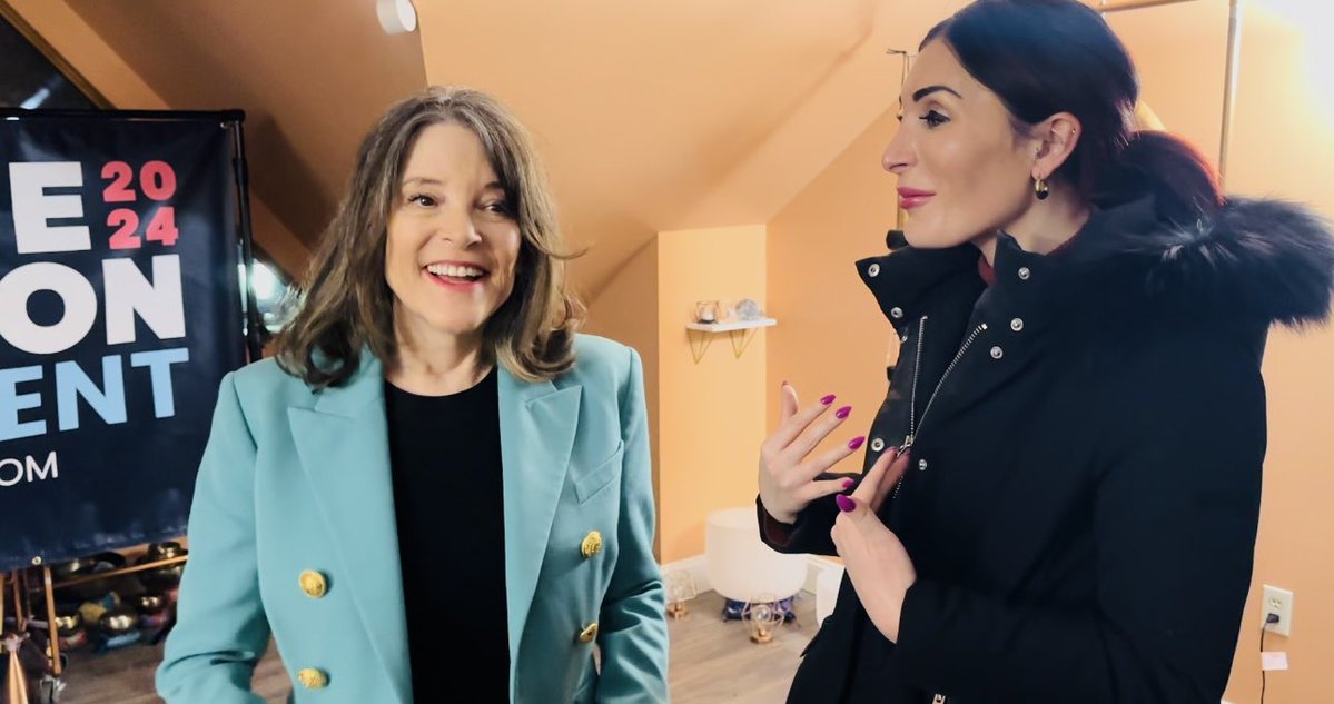 WOW! @marwilliamson held a campaign event at Heartsong Energy Healing in Hooksett, New Hampshire tonight. I wanted to cover the DNC led election interference in the Democrat Primary in New Hampshire where the @NHDems were threatened if they allowed for other candidates other than Joe Biden to be on the ballot after Biden chose to not be on the New Hampshire ballot. After I got major bad vibes and negative energy at the @deanbphillips event in Manchester, NH tonight, I went to ask Marianne the same question I wanted to ask Dean. She was very nice, she allowed me to stay, she took a photo with me, and her attendees were very pleasant. I asked her how many Democrat votes she expects to lose from Democrat Presidential candidate @NikkiHaley tomorrow in the New Hampshire primary after @BarackObama’s campaign manager @davidplouffe told Democrats and Democrat donors like @reidhoffman to vote for @NikkiHaley and to donate to her campaign instead of Democrats. I also asked her how she feels about the @DNC rigging the Democrat primary and if she opposes efforts to remove Donald Trump from the ballot in states across the country. I also asked her how she feels about @JoeBiden calling MAGA voters “domestic violent extremists”, if she would release non violent J6ers, and if Biden’s demonization of half the country as “DOMESTIC VIOLENT EXTREMISTS” is “good vibes” for the country. Never thought I’d end up in an energy healing center in snowy New Hampshire with @marwilliamson. I am a Trump supporter, but I can say that Marianne Williamson truly believes in free speech. It’s time for Dean Phillips to rip up his “Everyone’s Invited” campaign signs. Videos coming soon!