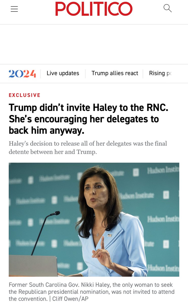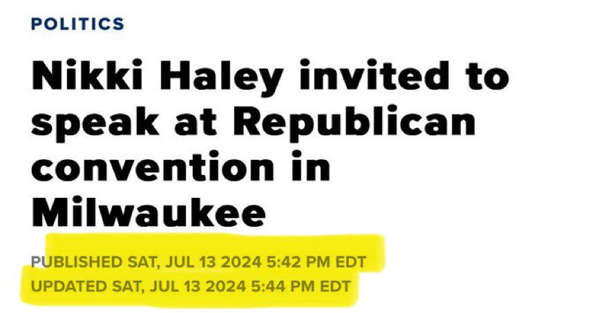 What are the chances Nikki Haley @NikkiHaley gets booed off stage at the RNC Convention… which she wasn’t attending… but then was announced as attending 30 minutes before Trump got shot in Pennsylvania. Thought she wasn’t going? Donald Trump did not invite Nikki Haley to speak at the RNC. She was announced as a speaker less than 30 minutes before he was shot at his rally.