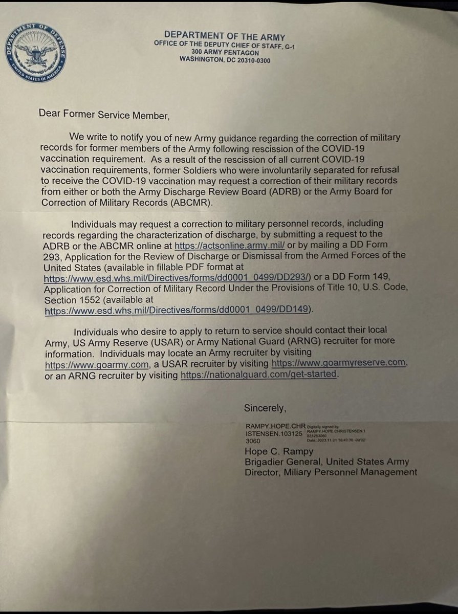My response to the Armyโs recent letter trying to bring back the unvaxxed soldiers it forced out and mistreated. Follow the tagged accounts to support DoD accountability. https://t.co/LgYbWTNI8R