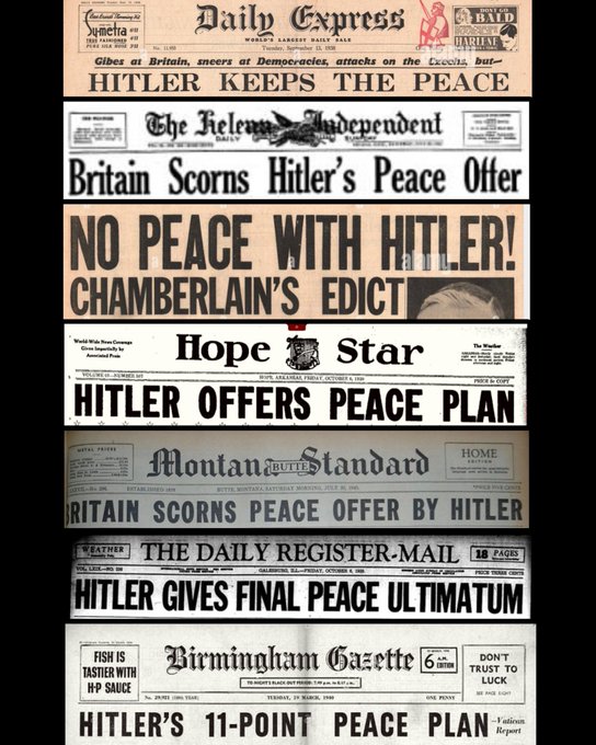 🧵Thread🧵Post 6/12🧵 Did you know that Germany offered 19 Peace Proposals: 7 of which were prior to invading Poland 🇵🇱 • First offer May 17, 1933 • Second offer December 18, 1933 • Third offer May 21, 1935 • Fourth offer March 31, 1936 • Fifth offer September 30, 1938 • Sixth offer December 6, 1938 • Seventh offer late 1939 Did you know that Germany offered Britain troops if they were ever attacked as part of that peace proposal? Post 7👇🏽