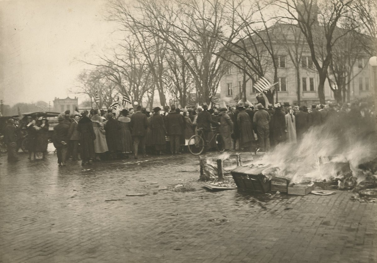 Lately, much has been talked about the Nationalist book burning. Even James Lindsay tried for a while to make his propaganda about it, while in the search for a new trending topic, but luckily, he failed. I think most of us grew up with the fake idea that “They” were burning science and history books. In reality, many have been waking up to the reality of the events. But I already shared a long post about this infamous book burning so, I wanted to share another piece of information that I don’t see anybody posting, in hopes that people learn something new, and a new trend sets itself through the path of X. During the First World War, German was the second most widely spoken language in the USA. Oh boy has this land fallen so low since then. Anyways, as an indirect result of this First World War, a kind of German hate and German identity self-inflicted hate flooded the USA, even when at the moment there were over 100 million first and second-generation German-Americans living in the United States. This hate of course was the inspiration to erase their own culture, heritage, identity and past. This hate provoked what you see in the photo. German textbooks, from the Baraboo High School, burning on a street in Baraboo, Wisconsin, during an anti-German demonstration. German language, literature and culture, taught at Baraboo High School faced the flames, and with it, a process of self-censorship and hate began in the new America. Of course, the crime was not only committed against books. The people were also sent to internment camps, and mobs attacked civilians, and even lynched some. The mission of my post is the laugh in the face of Irony. While some groups try hard to propagandize a never-existing History and Science Book Burning in Nationalistic Germany, the reality is that it did happen in Free America.