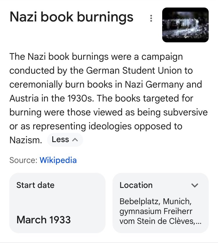 Another note about the “Nazi Book Burnings,” they weren’t sanctioned by the national socialist at all. They grew organically by German citizens who were disgusted with the filth that was being pushed on their citizenry. This doesn’t mean the national socialist didn’t district access to certain books however, the Third Reich banned approximately 4,175 titles, although it’s safe to say the citizenry did not miss the transgender pornographic books. 🧵 2/3