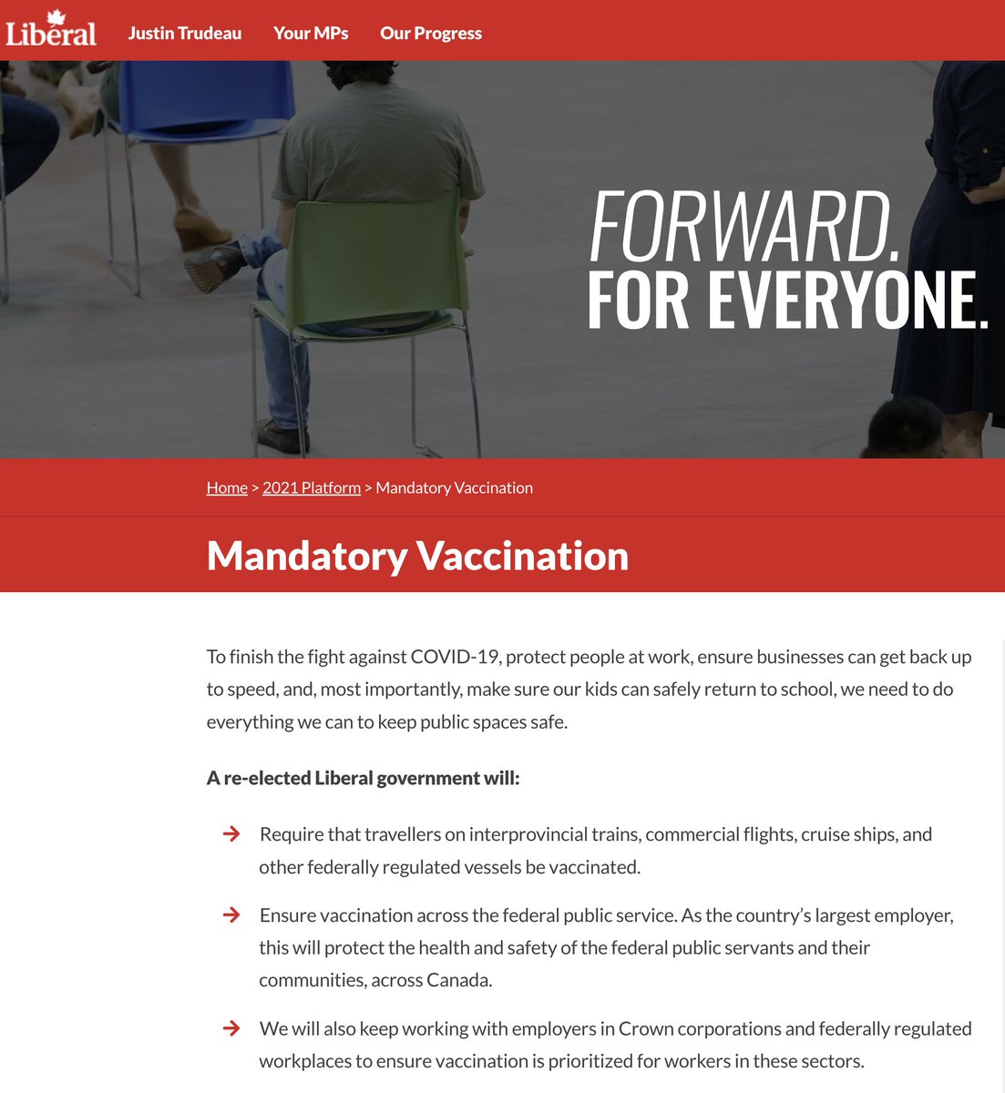 Trudeau says there was no mandatory vaccination and they didn't force anyone to get the jab? Its still on their website FFS https://t.co/Od05g8XphH