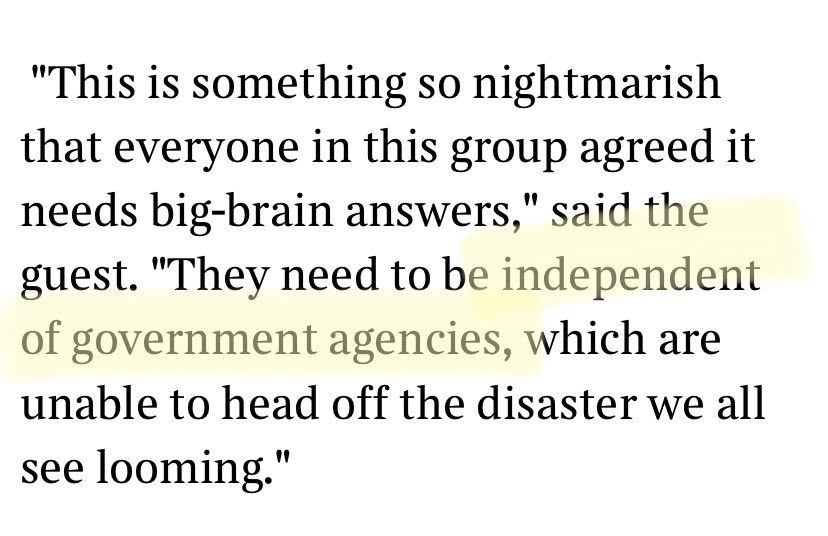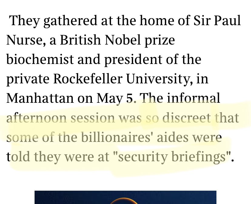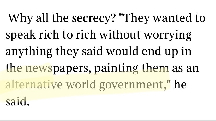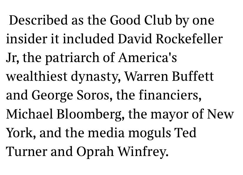 Here’s an article from 2009 reporting on a meeting of a group of billionaires. To me, its significance lies in what these individuals think the limits of their influence should be and how they should exercise power. 1/ https://thetimes.co.uk/article/83b550ca-5e98-4eff-a078-a8daf399d58e?shareToken=d2dffc6361e5dfe28b6422a62bbcfd93…