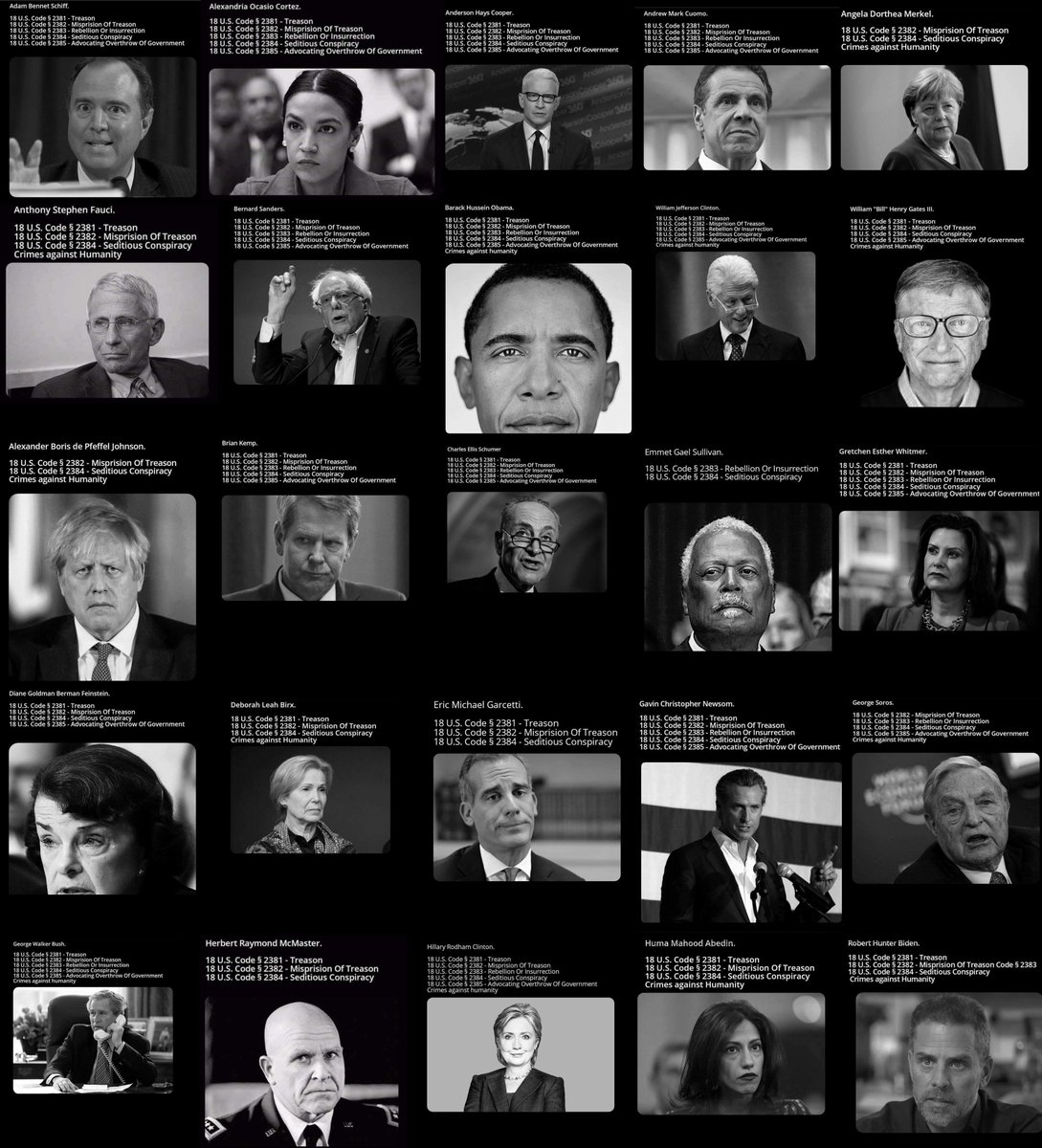 Charged With Any Combination Of Title 18 U.S. Code Felony Violations: Code § 2381 - Treason Code § 2382 - Misprision Of Treason Code § 2383 - Rebellion Or Insurrection Code § 2384 - Seditious Conspiracy Code § 2385 - Advocating Overthrow Of Government 💊 https://www.humorousmathematics.com/post/mid-2020-gitmo-update-arrests-indictments-executions