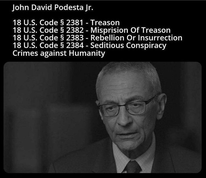 ⛓ @JohnPodesta Arrested. ☠️ Executed. Code § 2381-2384. Crimes Against Humanity. 🔁 Replaced. Military Installed Crisis Actor Doubles. 💊 https://humorousmathematics.com/post/mid-2020-gitmo-update-arrests-indictments-executions 💊 https://humorousmathematics.com/post/the-executed-clones-doubles-vril-lizard-reptilian-parasites