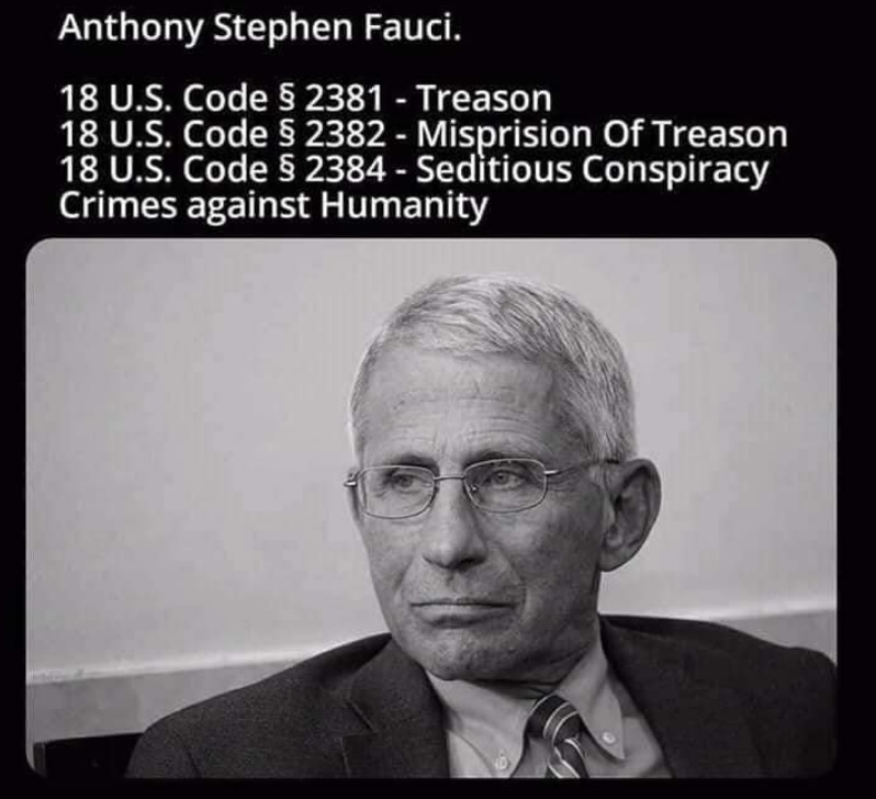 ⛓ Dr. Anthony Fauci Arrested. ☠️ Executed. Code § 2381, 2382 & 2384. Crimes Against Humanity. 🔁 Replaced. Military Installed Crisis Actor Doubles. 💊 https://humorousmathematics.com/post/mid-2020-gitmo-update-arrests-indictments-executions 💊 https://humorousmathematics.com/post/the-executed-clones-doubles-vril-lizard-reptilian-parasites