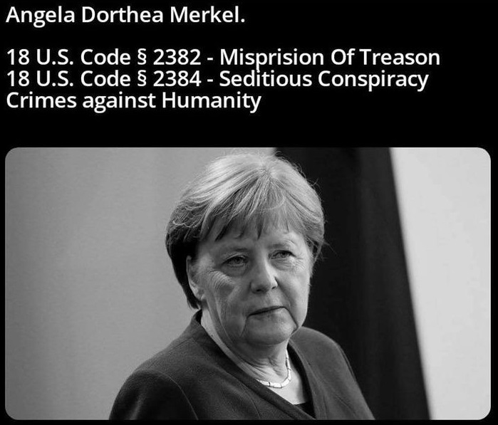 ⛓ Angela Merkel Arrested. An Ashkenazi Khazarian Hitler Rothschild. ☠️ Executed. Code § 2382 & 2384. Crimes Against Humanity. 🔁 Replaced. Military Installed Crisis Actor Doubles. 💊 https://humorousmathematics.com/post/mid-2020-gitmo-update-arrests-indictments-executions 💊 https://humorousmathematics.com/post/the-executed-clones-doubles-vril-lizard-reptilian-parasites