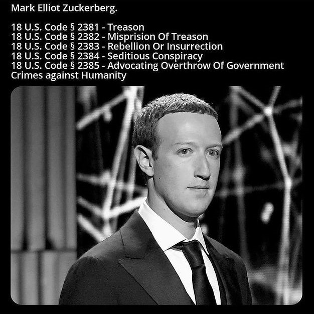 ⛓ Mark Zuckerberg (@Finkd) Arrested. a.k.a. Jacob Greenberg (Rockefeller's Grandson). ☠️ Executed. Code § 2381-2385. Crimes Against Humanity. 🔁 Replaced. Military Installed Crisis Actor Doubles. 💊 https://humorousmathematics.com/post/mid-2020-gitmo-update-arrests-indictments-executions 💊 https://humorousmathematics.com/post/the-executed-clones-doubles-vril-lizard-reptilian-parasites