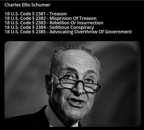 ⛓️@ChuckSchumer Arrested. ☠️ Executed. Code § 2381-2385. Crimes Against Humanity. 🔁 Replaced. Military Installed Crisis Actor Doubles. 💊 https://humorousmathematics.com/post/mid-2020-gitmo-update-arrests-indictments-executions 💊 https://humorousmathematics.com/post/the-executed-clones-doubles-vril-lizard-reptilian-parasites