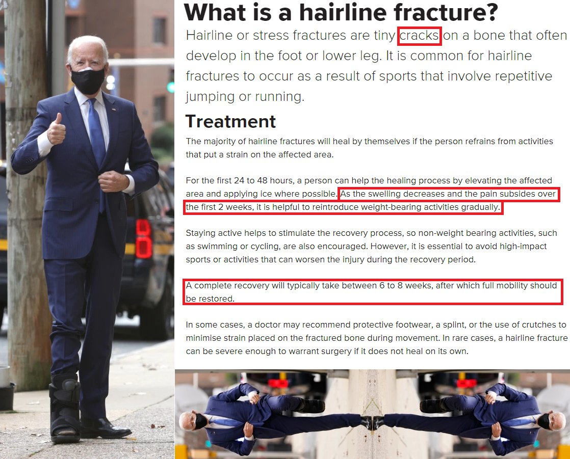 On November 29, 2020 the @JoeBiden double had fractured his foot playing with his dog. Just a few days later he so flagrantly showed off how not broken his foot was. He was so obviously concealing an ankle monitor and this just makes it undeniable. 💊 https://www.humorousmathematics.com/post/we-are-watching-a-white-hat-movie-the-2021-usa-inc-joe-biden-shadow-presidency