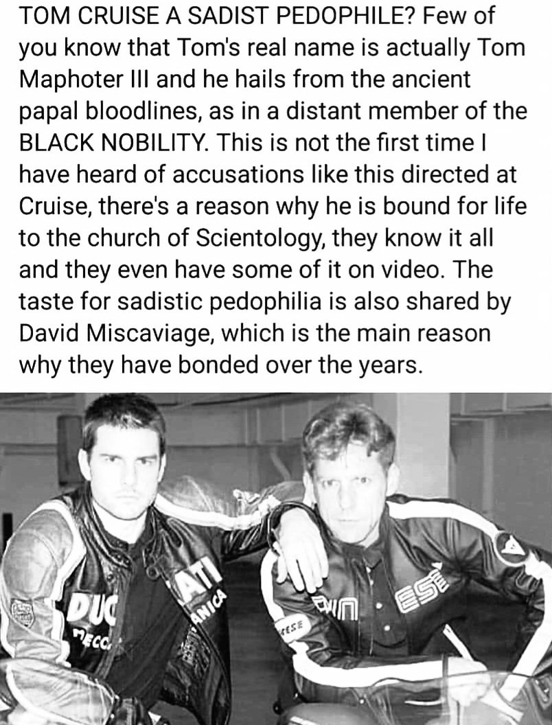 What did I tell you about Tom Cruise? What did I tell you about David Miscavige? What did I tell you about the Cannibal Club? What did I tell you about Scientology? These type of people don't happen to be friends. These type of people don't happen to be powerful. @luap2109l