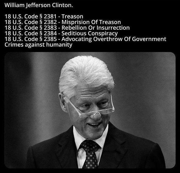 ⛓ @BillClinton Arrested. ☠️Executed. Code § 2381-2385. Crimes Against Humanity. 🔁Replaced. Military Installed Crisis Actor Doubles. 💊 https://www.humorousmathematics.com/post/mid-2020-gitmo-update-arrests-indictments-executions 💊 https://humorousmathematics.com/post/the-executed-clones-doubles-vril-lizard-reptilian-parasites
