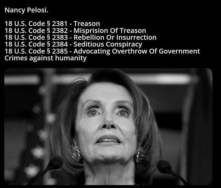 ⛓ @SpeakerPelosi Arrested. ☠️ Executed. Code § 2381-2385. Crimes Against Humanity. 🔁 Replaced. Military Installed Crisis Actor Doubles. 💊 https://humorousmathematics.com/post/mid-2020-gitmo-update-arrests-indictments-executions 💊 https://humorousmathematics.com/post/the-executed-clones-doubles-vril-lizard-reptilian-parasites
