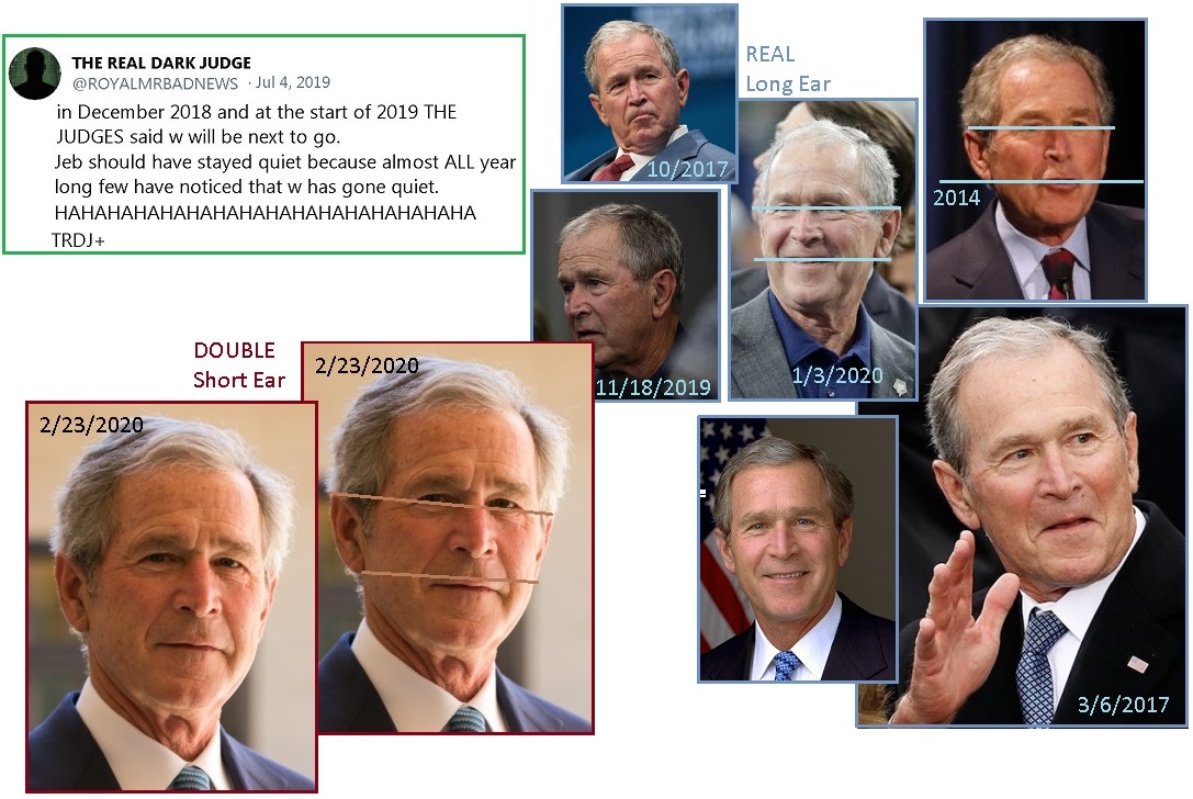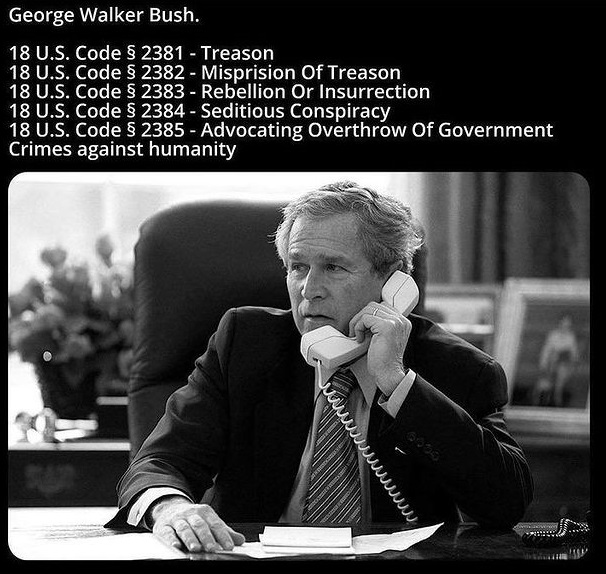 ⛓ George W. Bush Arrested. ☠️ Executed. Code § 2381-2385. Crimes Against Humanity. 🔁 Replaced. Military Installed Crisis Actor Doubles. 💊 https://humorousmathematics.com/post/mid-2020-gitmo-update-arrests-indictments-executions 💊 https://humorousmathematics.com/post/the-executed-clones-doubles-vril-lizard-reptilian-parasites